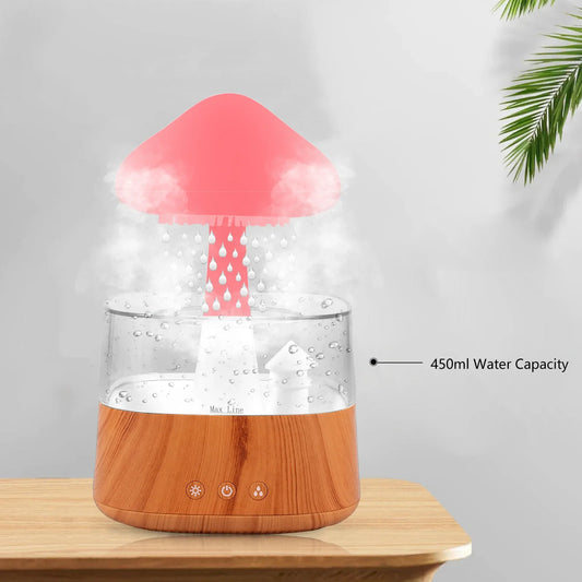 450ML Rain Drop Humidifier with Remote 7 Colours Led Light Mushroom Cloud Essential Oil Aromatherapy Diffuser for Sleeping Home